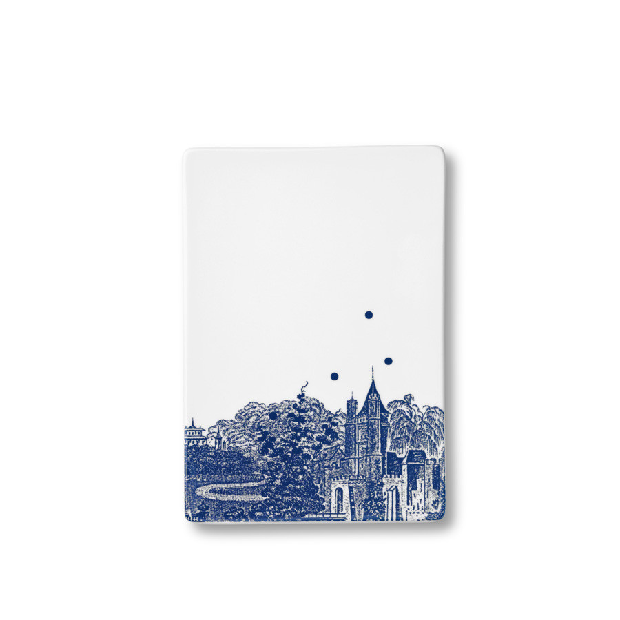 Mała, porcelanowa tacka z niebieskim lub brązowym pejzażem, z serii Ruth M od Anne Black.